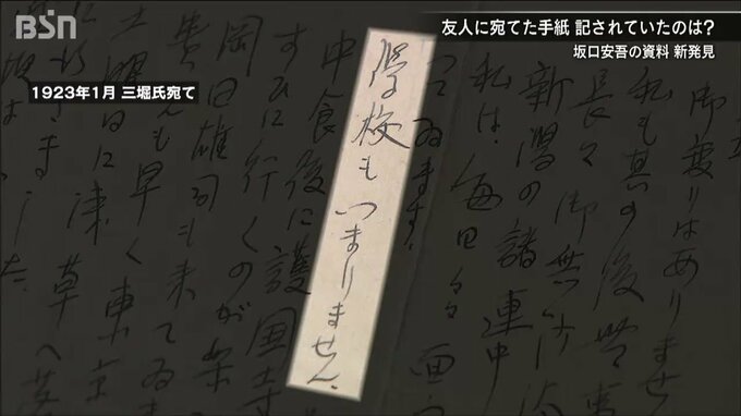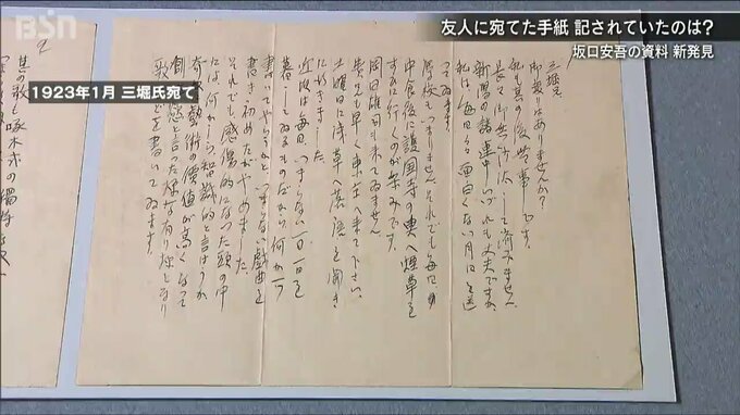新潟市出身の作家・坂口安吾が学生時代の友人に宛てた手紙が2022年の秋、新たに発見されました。その内容は、あまり知られていない“若かりし頃の安吾”を知ることができる貴重なものでした。