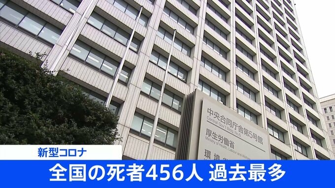 厚生労働省によりますと、きょう発表された新型コロナウイルスに感染して死亡した人の数は、全国であわせて456人でした。これまでの発表で最も多かった去年12月29日の420人を超え、過去最多となりました。