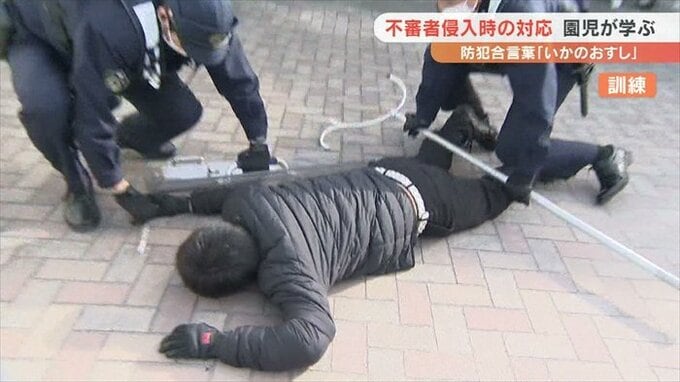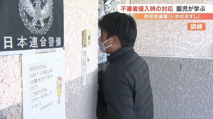 訓練は不審な男が保育所に現れて子どもたちを襲おうとする想定で行われました。