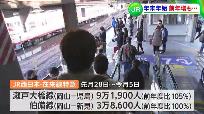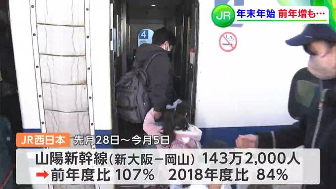 JR西日本によりますと、年末年始の利用状況は、山陽新幹線の新大阪ー岡山間で143万2000人と、前年度比107%となりました。