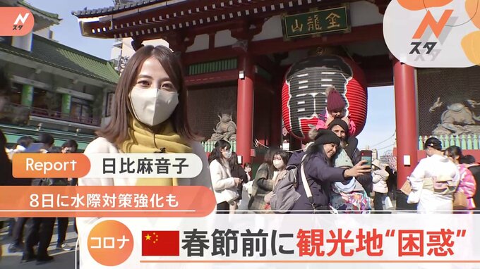 春節を前に政府は中国からの入国者への水際対策を強化します。インバウンドを期待する観光地を日比キャスターが取材しました。日比麻音子キャスター「浅草雷門の前に来ています。多くの方で賑わっているんですが、…