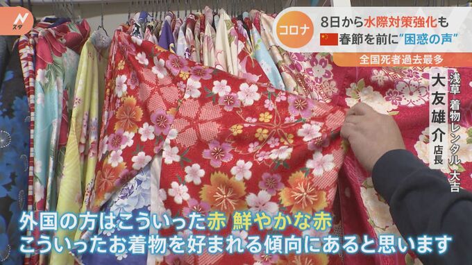 こちらの着物店、コロナ前の春節は多くの中国人で賑わいましたが、現在はまだ、中国からの観光客が戻ってきていないといいます。
