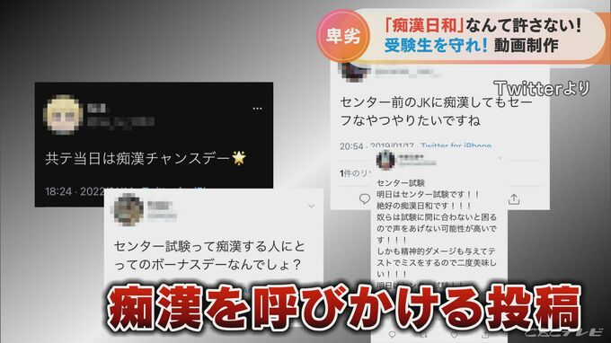 1月14日、15日に迫った大学入学共通テスト。受験生にとって重要なこの日を「痴漢日和」などと呼ぶ、目を疑うような投稿がここ数年、目立つようになっています。警察と高校生が被害を防ごうと立ち上がりました。