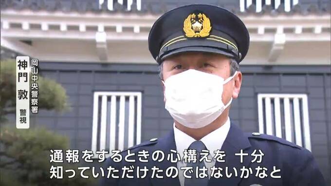【岡山中央警察署 神門 敦 警視】「ボランティアの方々は初めて通報訓練を経験されたと思いますので、通報をする時の心構えを十分知っていただけたのではないかなと思います」