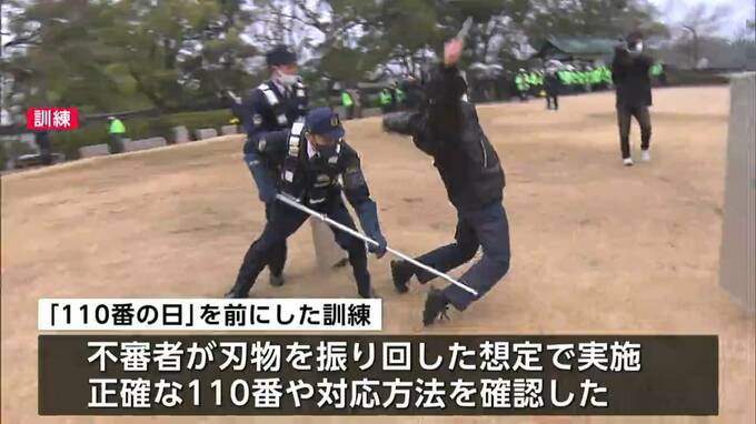 1月10日の「110番の日」を前に通報の適正な利用を呼びかける訓練が岡山市北区で行われました。