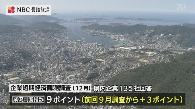 日銀の12月の短観=企業短期経済観測調査によりますと、景気が良いと答えた企業から悪いと答えた企業を引いた業況判断指数は9で、前回9月の調査から3ポイント増加。