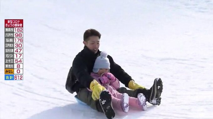 3連休最終日の9日、青森市郊外のスキー場では大勢の親子連れがスキーやそり遊びを満喫しました。※そり遊びする子どもは「ぎゃー!あはは、おもしろい」青森市にあるモヤヒルズ。9日の積雪は約70センチ、雪質も良…