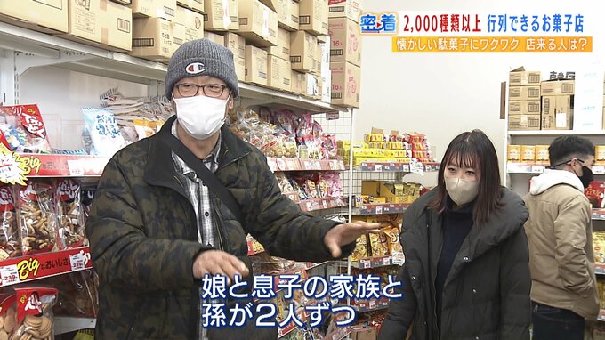 店は家族揃ってのお客さんでにぎわい始めました。駄菓子がお目当てだというお客さんに話を聞きました。