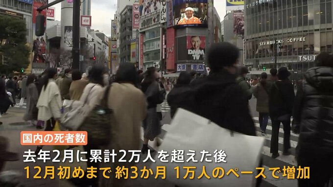 新型コロナウイルスについて、全国の累計の死者数が6万人を超えました。1か月あまりで1万人以上増加しています。厚生労働省によりますと、きょう全国では新たに9万5308人の感染が報告されました。死者は336人で、…
