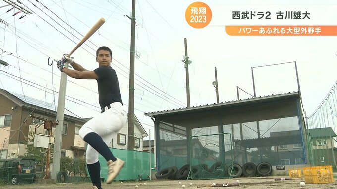 古川選手は高校通算21本塁打、50メートル6秒の俊足で走攻守3拍子そろった外野手。身長186センチ体重90キロの恵まれた体格と身体能力が高く評価されています。