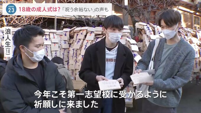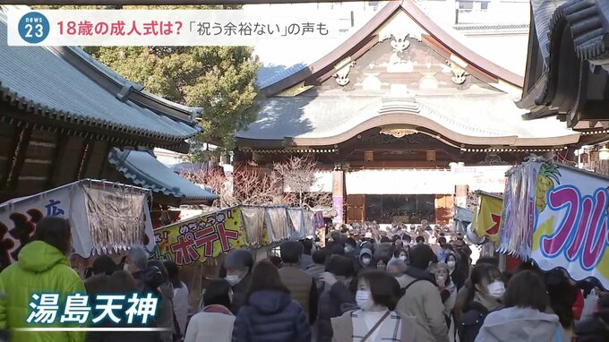 東京・湯島天神。受験生でもある新成人からは“祝う余裕がない”という声が…