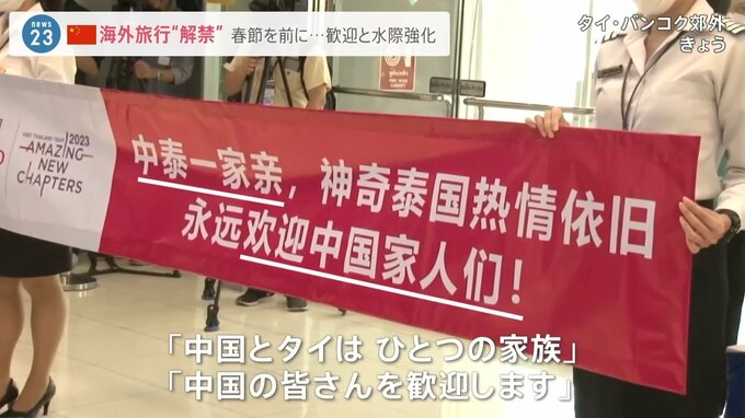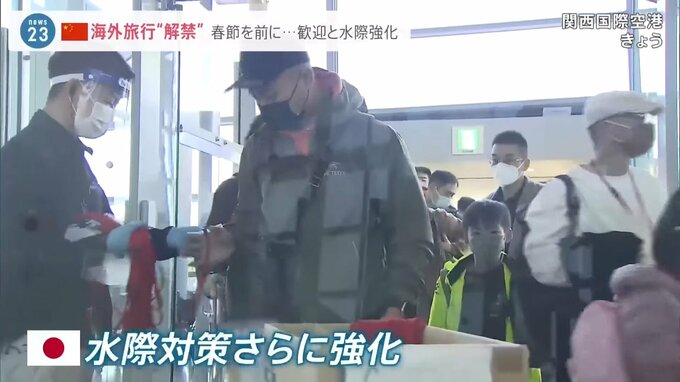 日本行きの航空機のカウンターも混雑しています。20億人以上が国内を移動する春節を前に解禁された海外旅行。各国も対応に追われています。
