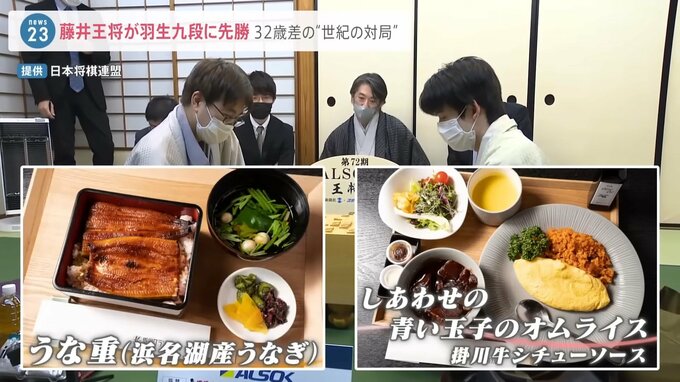 また、昼食には、藤井王将が「しあわせの青い玉子のオムライス 掛川牛シチューソース」。羽生九段が「うな重(浜名湖産うなぎ)」を選びました。