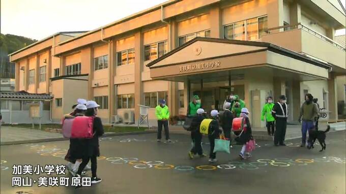 岡山県美咲町の小学校で、2匹の「特別防犯対策犬」が参加して、見守り活動が行われました。