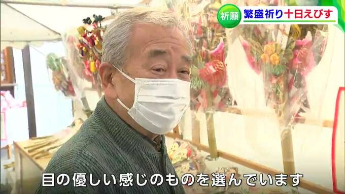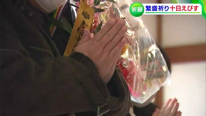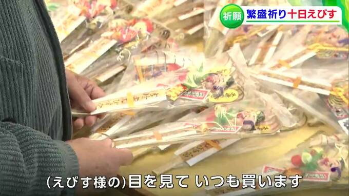 「本えびす」のきょうは、朝から多くの人が訪れ、えびす宮で祈祷したあと、福をかき集めるといわれる「熊手」や、福をすくうといわれる「福箕(ふくみ)」といった縁起物を求めていました。