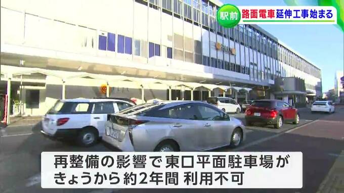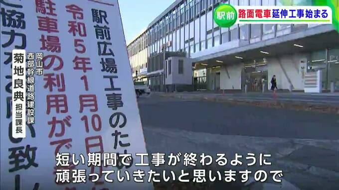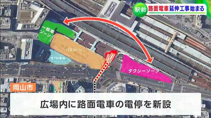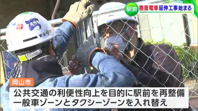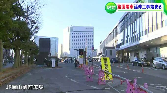 JR岡山駅東口の駅前広場に路面電車を乗り入れる工事が、きょう(10日)から本格的に始まりました。この影響で約2年間、岡山駅東口の平面駐車場が利用できなくなります。