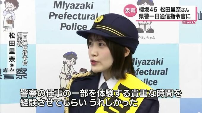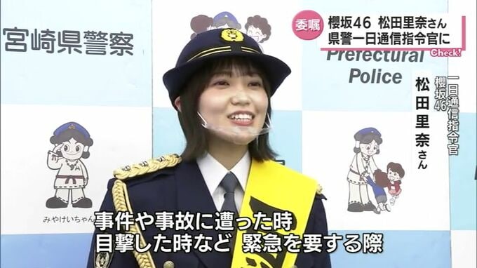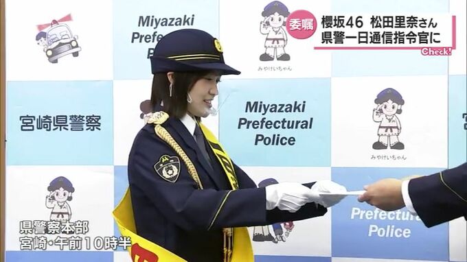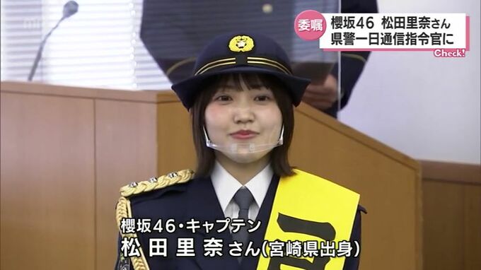 10日は、宮崎県出身でアイドルグループ・櫻坂46のキャプテンを務める松田里奈さんが県警察本部の一日通信指令官に委嘱されました。
