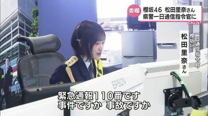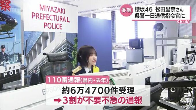 宮崎県警察本部では、アイドルグループ・櫻坂46の松田里奈さんが一日通信指令官を務め、110番の適正な利用を呼びかけました。