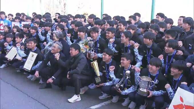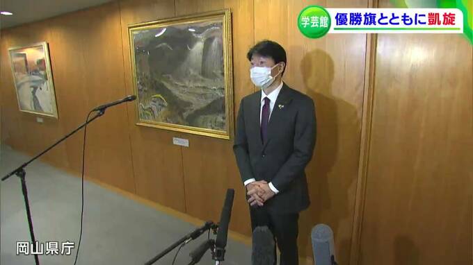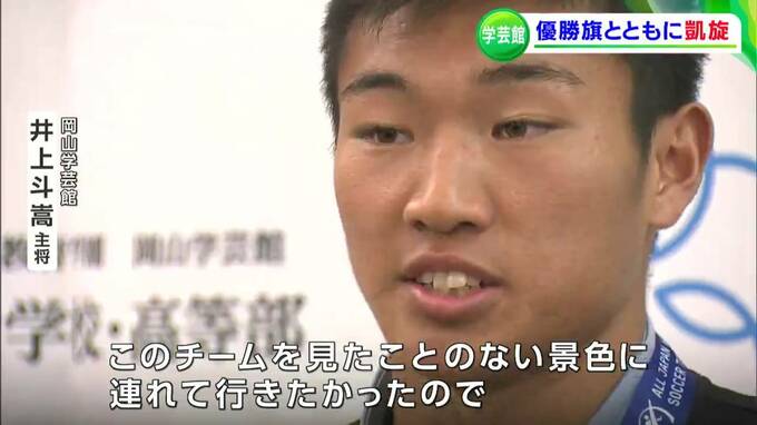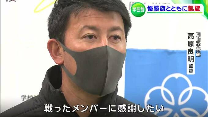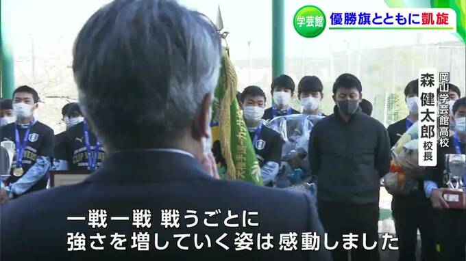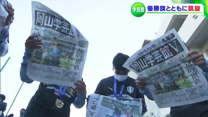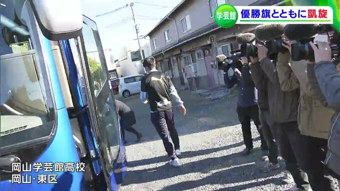きのう(9日)、全国高校サッカー選手権で初優勝を果たした、岡山学芸館高校サッカー部の選手たちが岡山に凱旋です。学校で待つ仲間たちに出迎えられました。