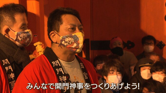 「(新型コロナで)いろんなことが抑制されて、いろんな人に会えない、やりたいこともやれない、そんなことが続きました。そして今回、3年ぶりに行われるこの開門神事というものを全国に知らしめたい。みんなで開門神事をつくりあげよう!」