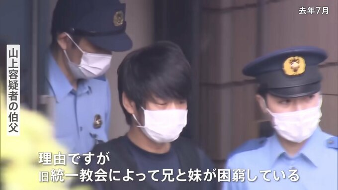 伯父「平成17(2005)年1月に徹也(容疑者)が自殺未遂している。これを実行した理由ですが、旧統一教会によって兄と妹が生活困窮しているわけです。(兄妹へ)自分の死亡保険金を渡す」