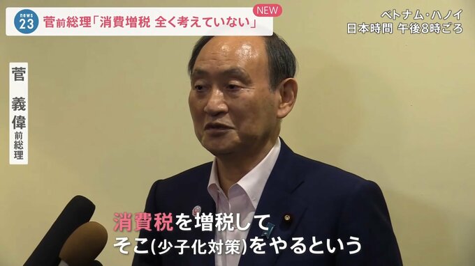 ベトナムを訪問中の菅前総理。岸田政権が掲げた「異次元の少子化対策」をめぐって、消費税の増税による財源確保に否定的な認識を示しました。