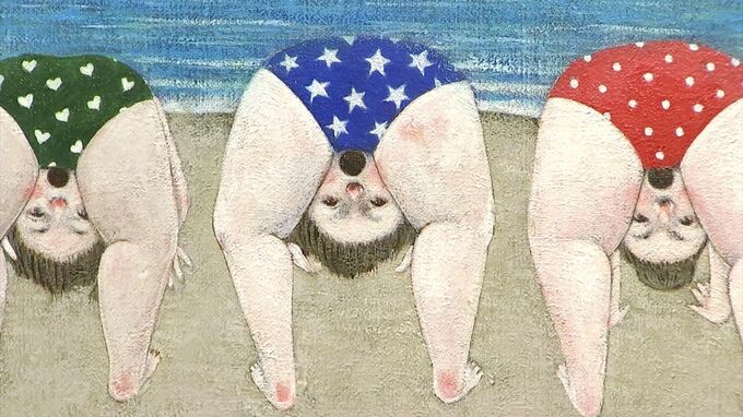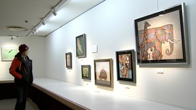 岡山高島屋で開かれている「現代アート・俊英作家展」では、油絵やアクリル画など、現代アート作家5人の作品29点が展示されています。