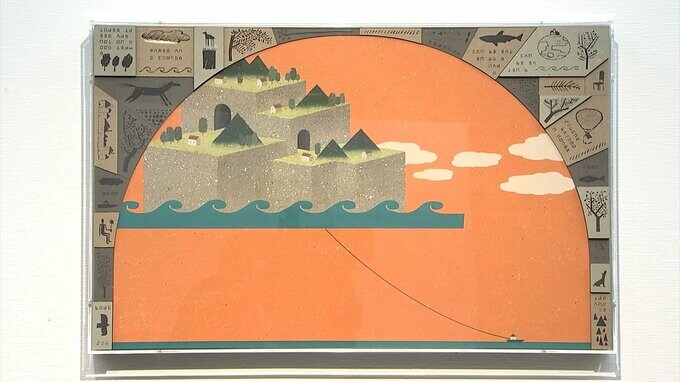 空想の世界に広がる物語をテーマにした、高橋祐次さんの作品です。アクリル絵の具に砂を混ぜて描いています。