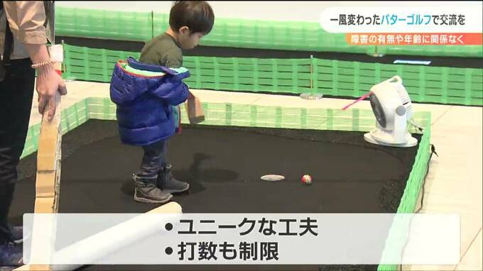 仙台市の定禅寺通り沿いの施設で、一風変わったパターゴルフが楽しめる会場が設けられました。障害の有無や年齢に関係なく様々な人に交流してもらおうという取り組みです。仙台市青葉区のせんだいメディアテークに…