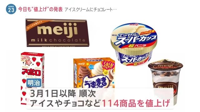 明治は、アイスクリームなど114商品を3月1日以降、順次値上げすると発表。
