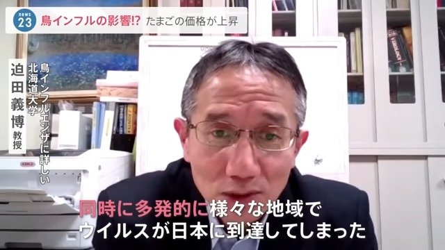 「秋のシベリアからの渡り鳥、この渡り鳥の中で高病原性鳥インフルエンザウイルスを持って、南に渡ってきた。そのなかにおける感染率が高いと。日本への渡りのルートはいくつもありますが、同時に多発的に様々な地域でウイルスが日本に到達してしまった」