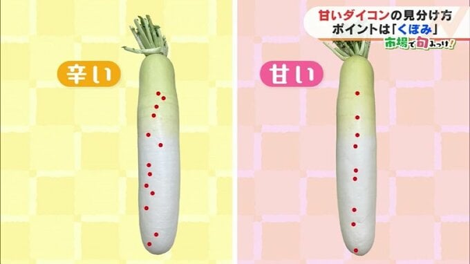 くぼみが不ぞろいだったり、らせん状になったりしているものは、成長の途中でストレスを受けた証拠で「辛くなる」。反対に、くぼみが真っ直ぐに並んでいると「甘い」そうです。