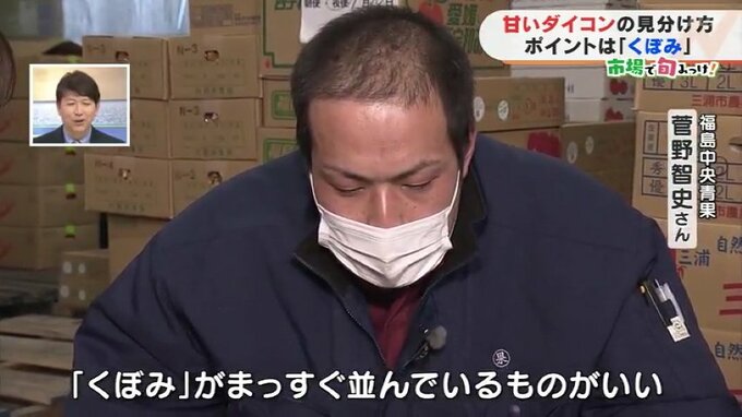 福島中央青果・菅野智史さん「くぼみがまっすぐ並んでいるものがいい」
