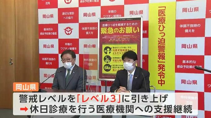 これを受け岡山県は、警戒レベルを2番目に深刻なレベル3に引き上げ、休日診療を行う医療機関への支援などを引き続き行うこととしました。