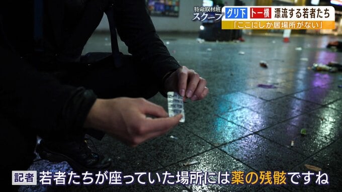 「若者たちが座っていた場所に薬の残骸ですね。メジコンという咳止めの薬です」