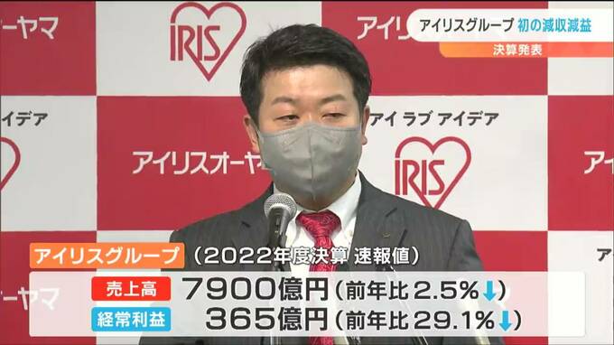 仙台市の生活用品製造大手、アイリスオーヤマを含むアイリスグループは去年1年間の業績について、グループとして初めて減収減益となる見込みだと発表しました。アイリスグループが発表した去年1年間の決算の速報値…