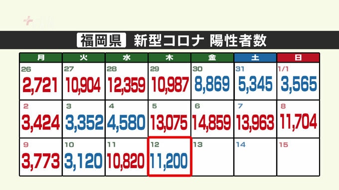 新型コロナウイルスの感染状況です。福岡県では12日、新たに1万1200人の陽性が新たに確認されました。2日連続で1万人を超えています。死者の数も多く、60代以上の男女30人が亡くなりました。11…