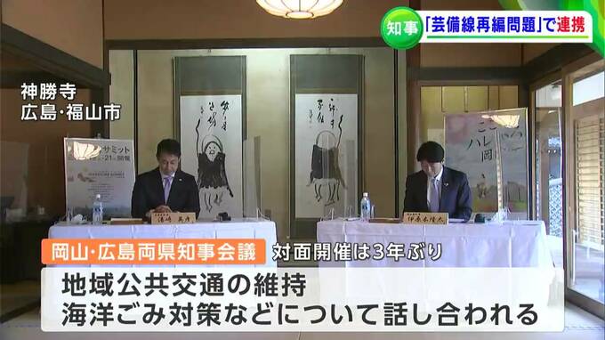 岡山・広島の両県知事会議が広島県福山市で開かれ、芸備線の再編問題などに連携して取り組む方針を確認しました。