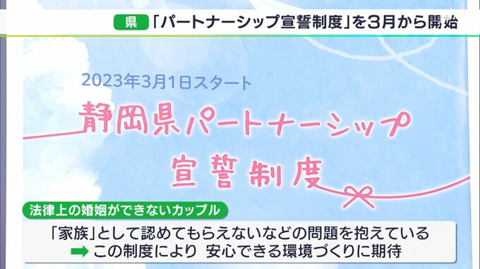 静岡県は、婚姻が認められないカップルなどのための「パートナーシップ宣誓制度」を2023年3月から始めると発表しました。「パートナーシップ宣誓制度」は婚姻が認められていない、あるいは、できないカップルが共…
