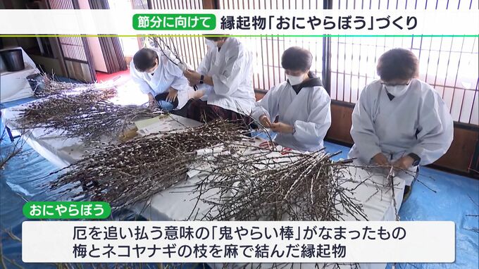 2月3日の節分に向けて、静岡市内の神社では、縁起物「おにやらぼう」づくりが行われました。静岡浅間神社(静岡市葵区)が毎年、この時期に作る「おにやらぼう」は、厄を追い払う意味の「鬼やらい棒」がなまったもの…