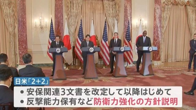 ワシントンでは外務・防衛担当の閣僚協議「2+2」が開かれました。日本が安保関連の3文書を改定して以降初めてで、日本は反撃能力の保有など防衛力強化の方針を説明しました。