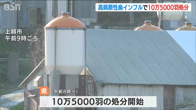 新潟県内の養鶏場で鳥インフルエンザが発生したのは今シーズン3例目で、村上市の養鶏場ではおよそ130万羽の処分が続いています。