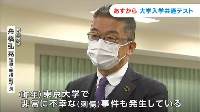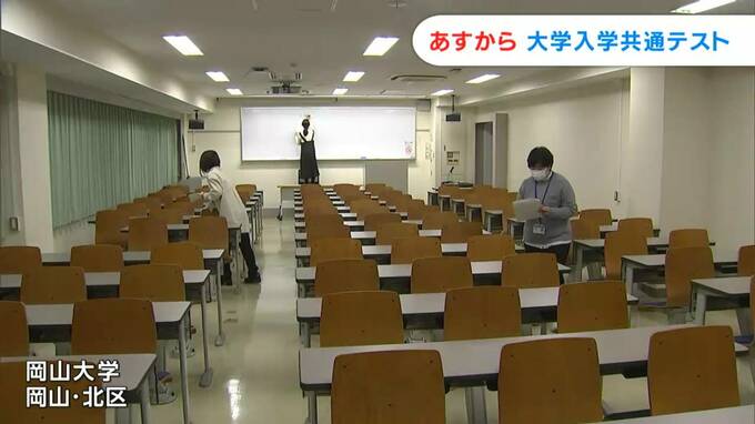 あす(13日)からの大学入学共通テストに向け、岡山・香川でも会場の準備が行われました。去年は、試験当日に東京大学で受験生らが切りつけられる事件があったことから、警備体制を強化します。