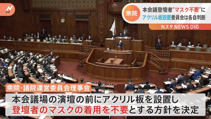 衆議院では今月23日に召集される通常国会から、本会議や委員会での登壇者のマスク着用を不要とする方針を決めました。きょう午後に開かれた衆議院の議院運営委員会の理事会では、国会でのコロナ感染対策の緩和につ…