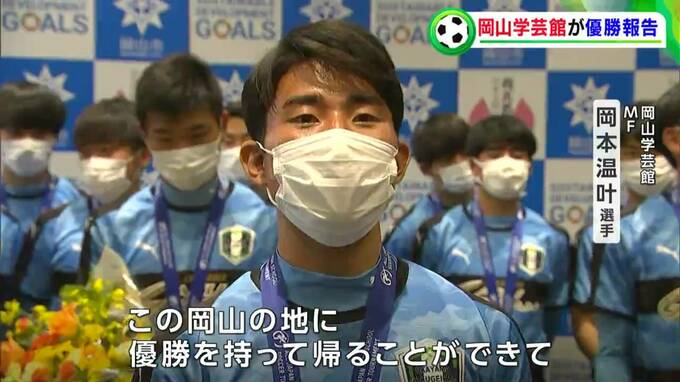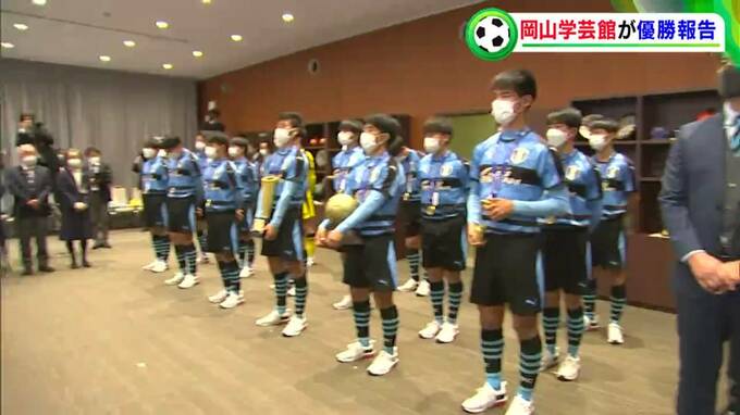 全国高校サッカー選手権で、岡山県勢として初優勝を果たした岡山学芸館高校・男子サッカー部です。選手たちが、岡山市役所を表敬訪問しました。