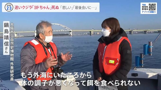 「死んでますね、残念ながら。もう外海にいたころから体の調子が悪くなって、餌を食べられない、そういう状況で泳ぐ力も落ちてきたので流されてきたのだろう」