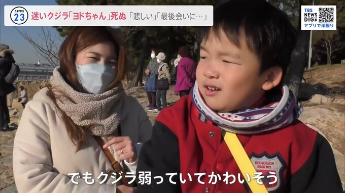 「死んだと聞いたんで最後に会いに来ようかって。娘がずっと『クジラさん帰れるかな?』って聞いてたんで。寂しいな?」