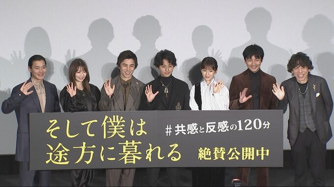 Kis-My-Ft2の藤ヶ谷太輔さん主演の映画「そして僕は途方に暮れる」の公開記念舞台挨拶が行われ、藤ヶ谷さんをはじめ、前田敦子さん、中尾明慶さん、香里奈さん、毎熊克哉さん、野村周平さん、三浦大輔監督が登壇しました。