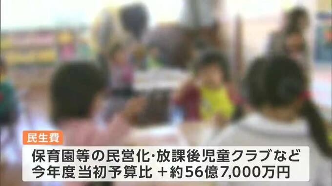 一般会計の内訳では、民生費が「保育園等の民営化」「放課後児童クラブの運営事業費」などが増えた影響で、今年度当初予算から約56億7千万円の増額。