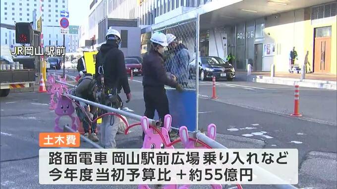また土木費が「路面電車の岡山駅前広場の乗り入れ」といった都市交通戦略推進事業などが増えた影響で、約55億円の増額となっています。